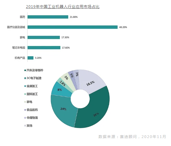海外訂單回流,加速國內(nèi)制造業(yè)轉(zhuǎn)型發(fā)展。2020年新冠肺炎疫情席卷全球,中國依托完整的產(chǎn)業(yè)鏈條和得當(dāng)?shù)囊咔榉揽卮胧┏薪悠渌貐^(qū)轉(zhuǎn)移至中國的制造業(yè)訂單,以前三季度制造業(yè)部分產(chǎn)品為例,食品醫(yī)藥領(lǐng)域中的醫(yī)藥產(chǎn)品出口增長21.8%,醫(yī)療儀器及器械出口增長48.2%,家電出口增長17.3%,3C電子領(lǐng)域中筆記電腦出口增長17.6%,機(jī)電產(chǎn)品出口增長3.2%。外貿(mào)訂單的增加使得依靠傳統(tǒng)低成本要素?cái)U(kuò)大產(chǎn)能的發(fā)展模式受到嚴(yán)峻挑戰(zhàn),制造業(yè)企業(yè)亟須通過工業(yè)機(jī)器人提高產(chǎn)能,工業(yè)機(jī)器人的應(yīng)用需求被進(jìn)一步激發(fā)。